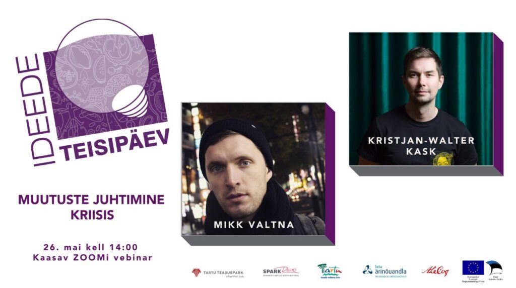 Ideede Teisipäev toimub erakorraliselt lausa 2 järjestikkusel teisipäeval – 26. mail ja 2. juunil. Võiks öelda, et ühel puhul eetris vaid mehed ja teise puhul eetris vaid naised, aga tegelikult tulevad arutluse alla väga põnevad teemad. 26.mai kaasaval veebinaril jagavad oma kogemusi kriisi ajal julgeid muutusi teinud ettevõtjad ja 2. juunil tutvustatakse eduka eesti ettevõtte eripärast juhtimiskultuuri.